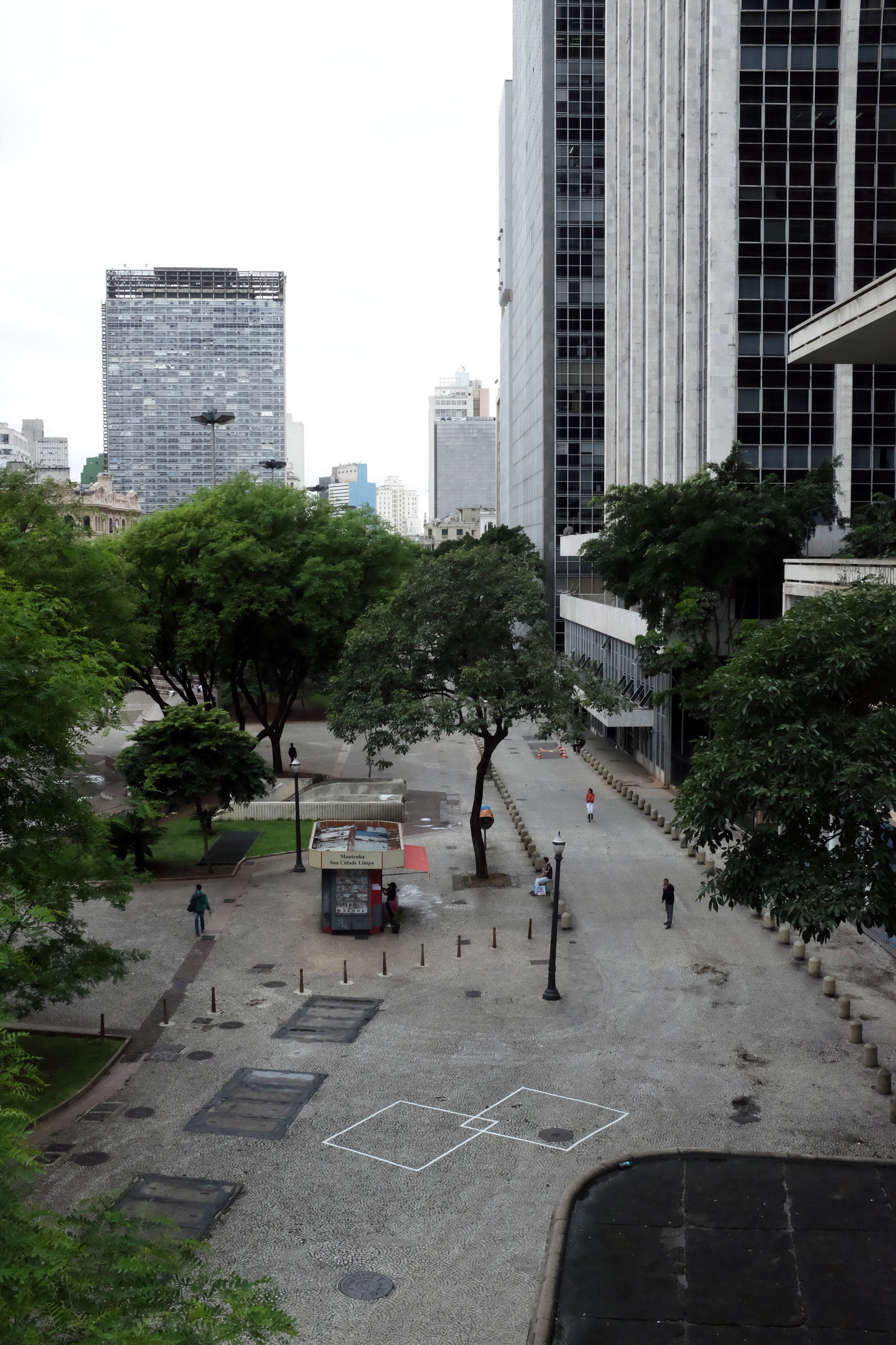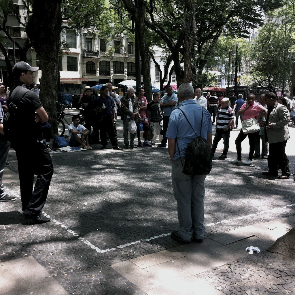 In the city of Sao Paulo, Brazil - there are street preachers that use the form of a square painted on the ground as a form of a stage.