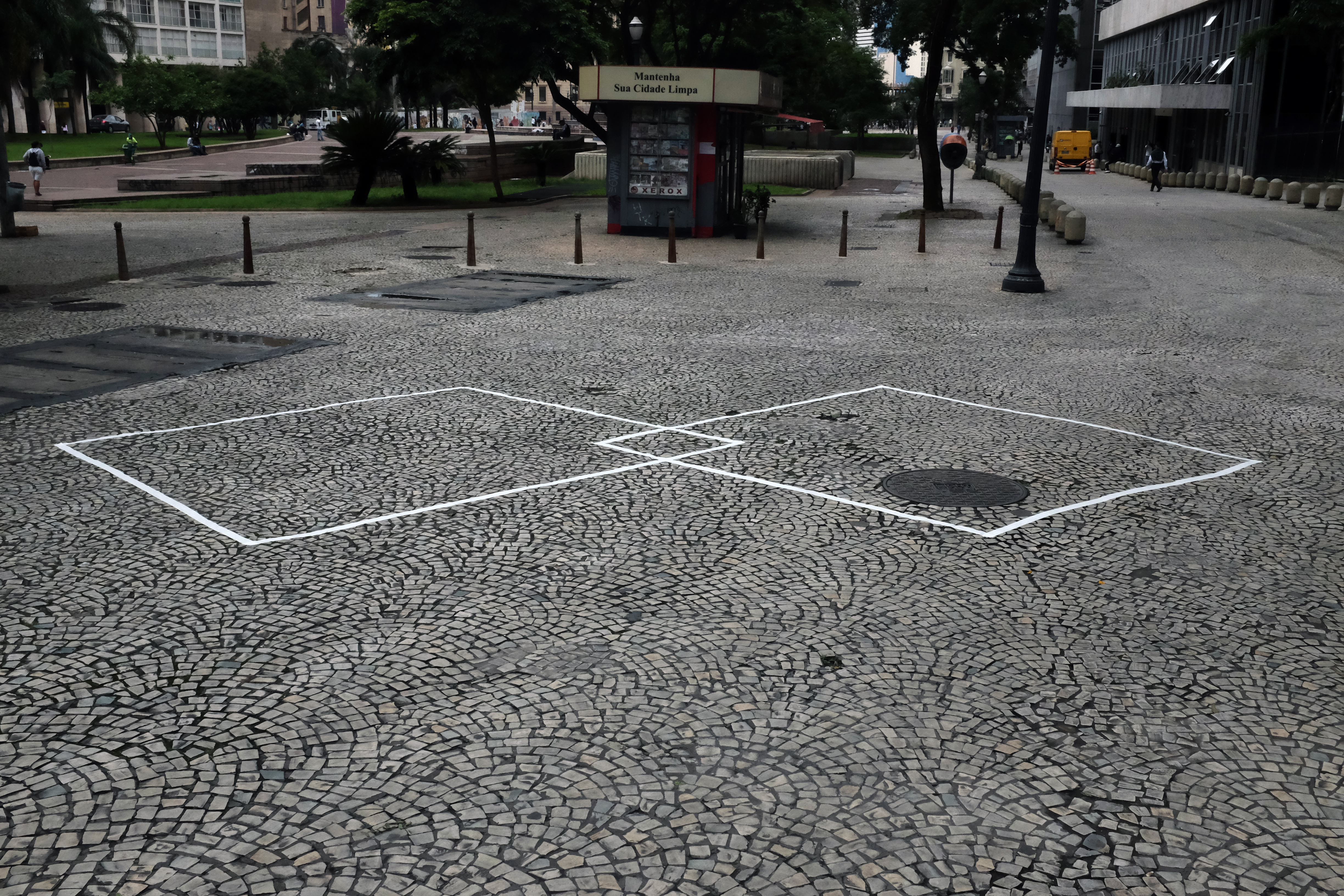 Possibility of dialogue (II), site specific; tape, white paint; dimensions variable; 2016